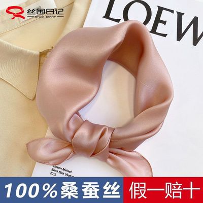 100%桑蚕丝53cm纯色真丝小方巾高档春秋季围巾女时尚百搭职业丝巾