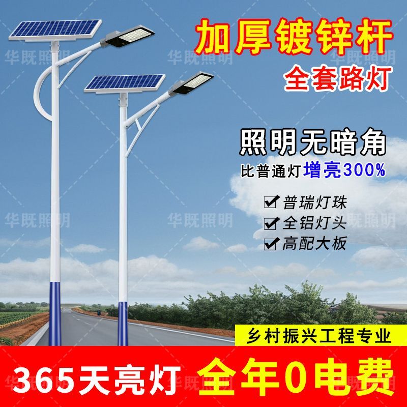 工程太阳能路灯带杆全套3-6米新农村户外防水超亮大功率led照明灯