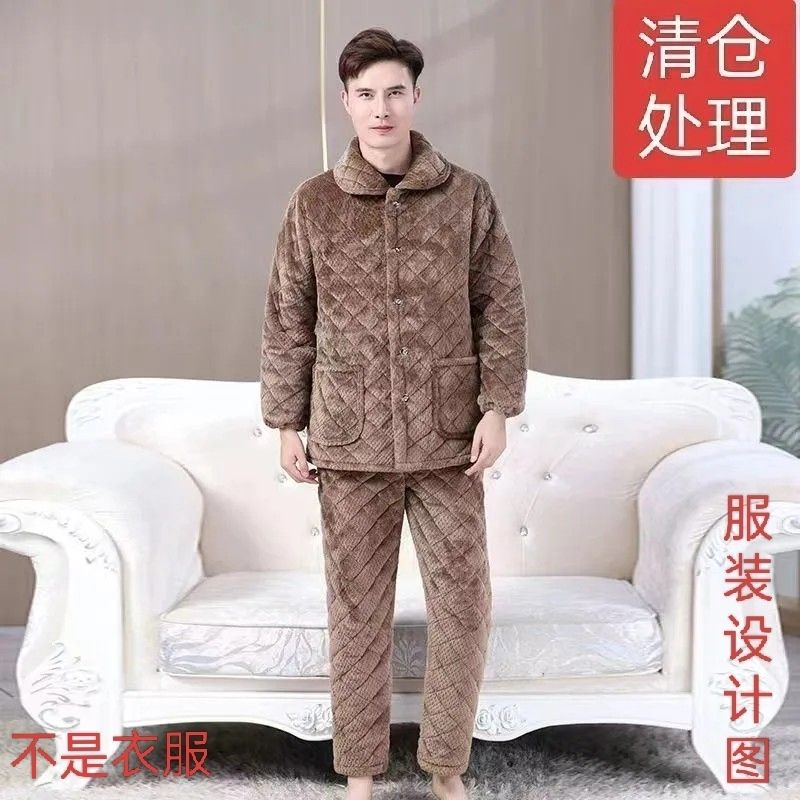 冬季睡衣男士家居服设计图纸加绒加厚套装珊瑚睡衣睡裤套装裁剪图