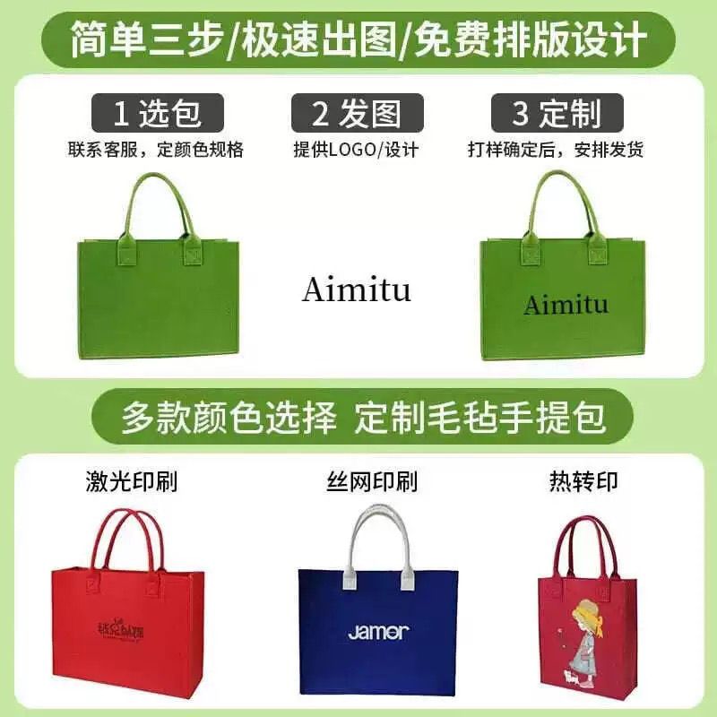 毛毡定制手提包大容量logo购物袋商务印字时尚简约手提袋环保di