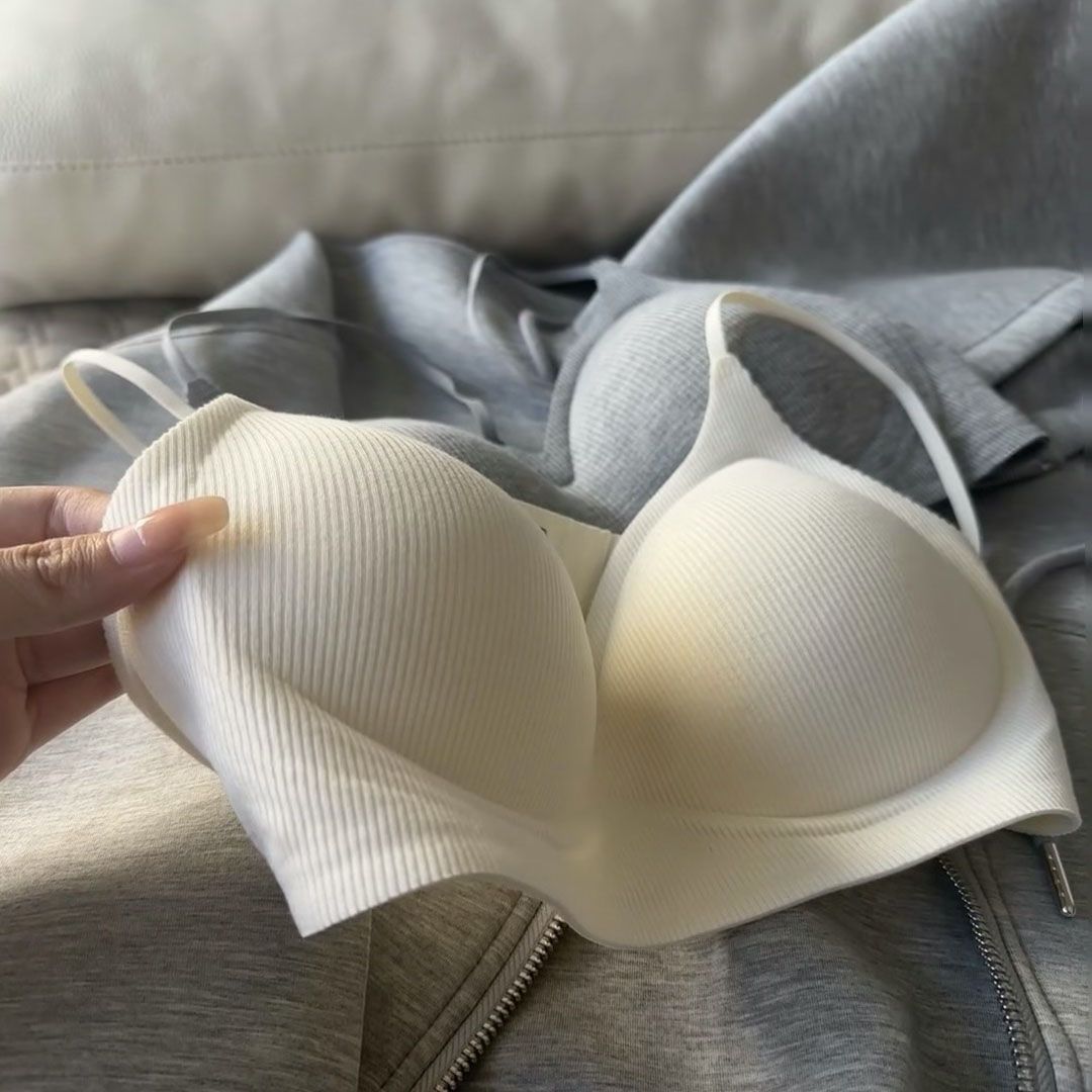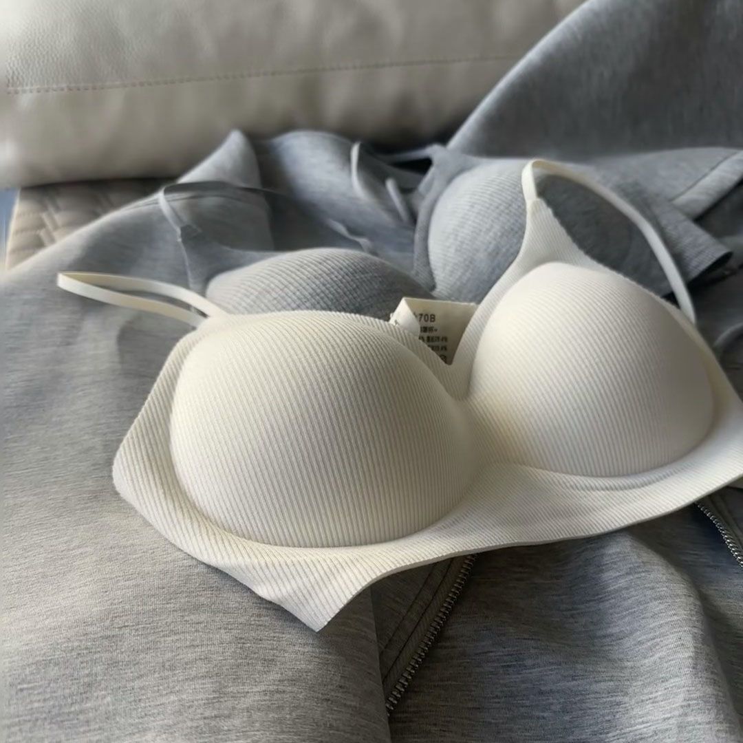 SIGI丝界蜜桃杯螺纹无痕内衣女固定杯小胸聚拢显大腰细调整型文胸