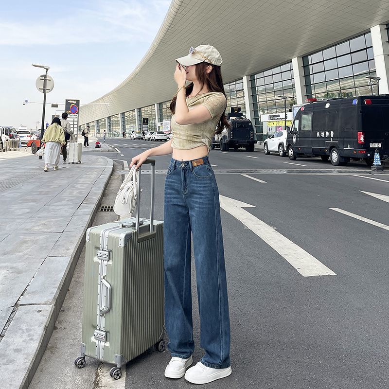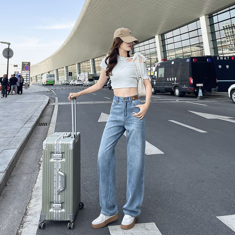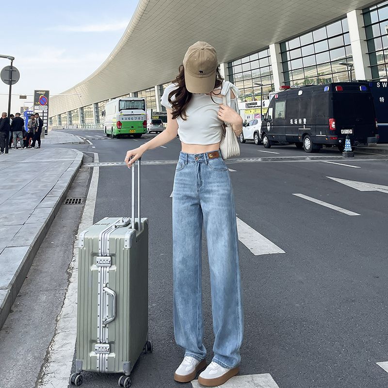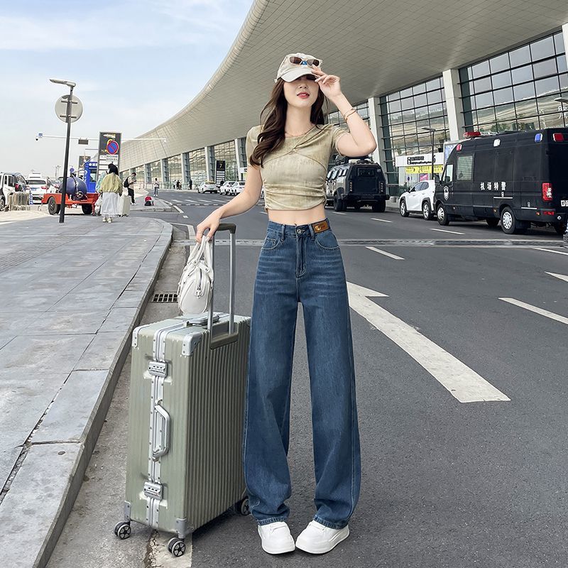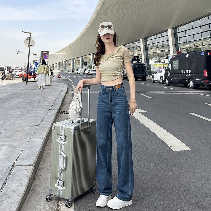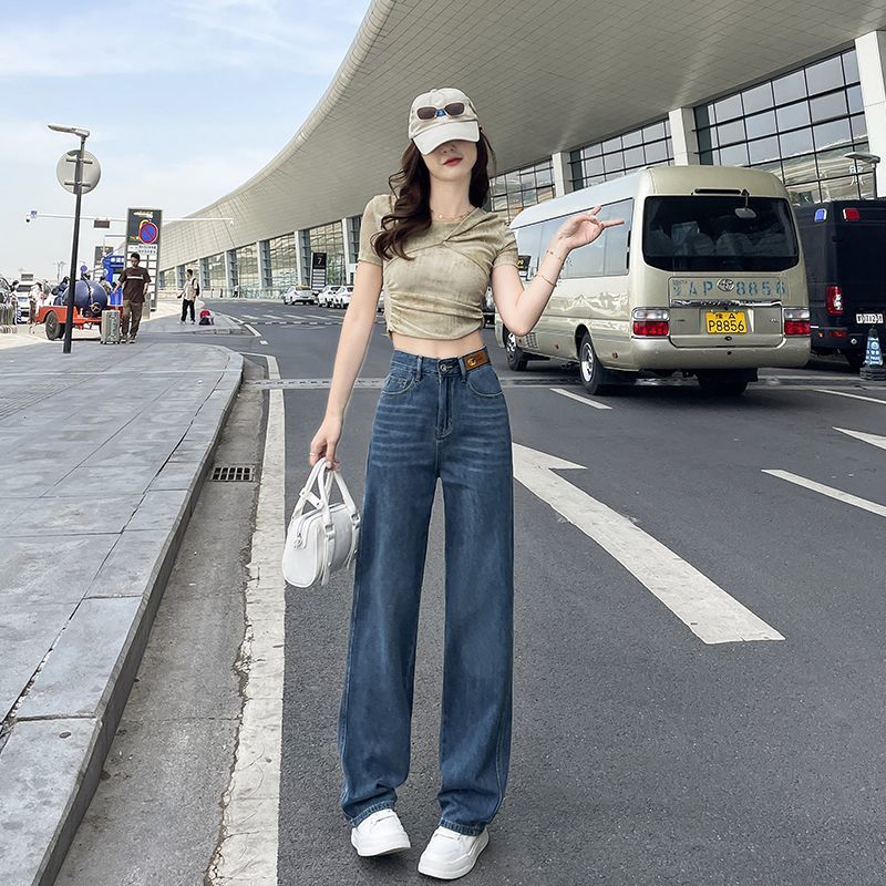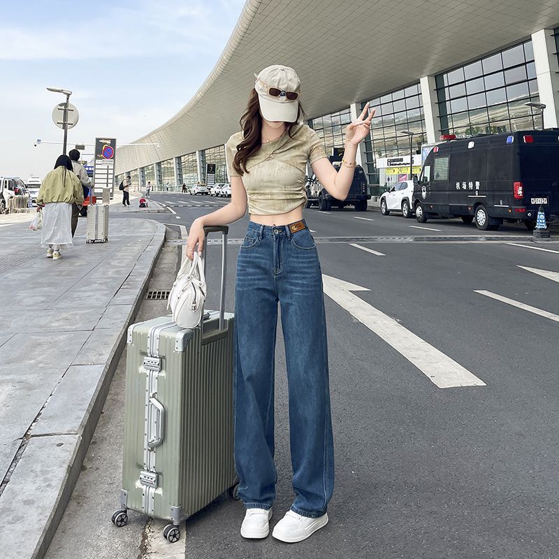 ZB复古直筒牛仔裤新款秋季显瘦宽松小个子高腰垂感裤子拖地筒裤