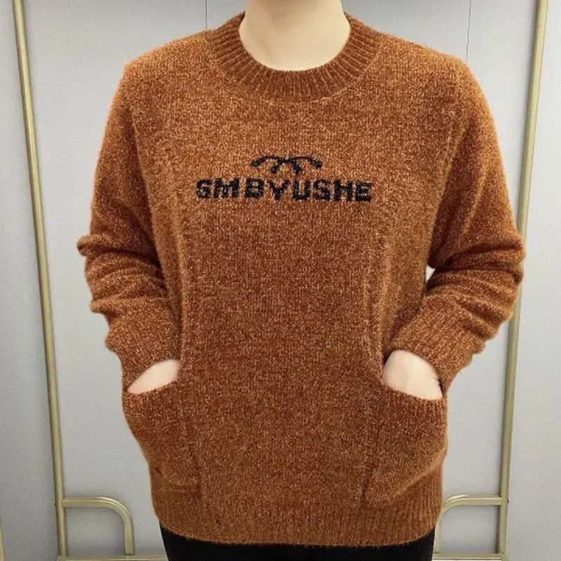 清仓时尚加绒保暖打底衫冬季新款复古花色大码宽松休闲减龄小衫【10天内发货】