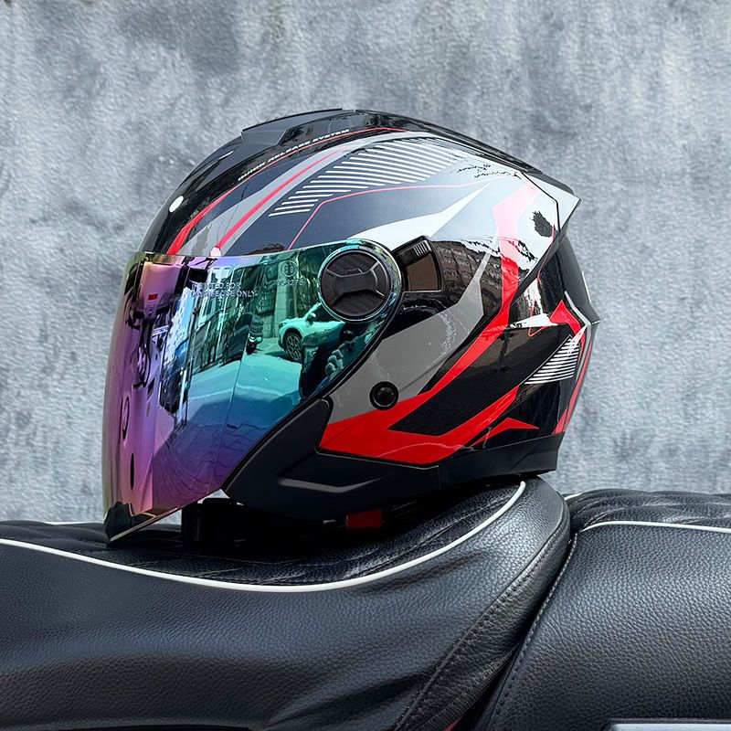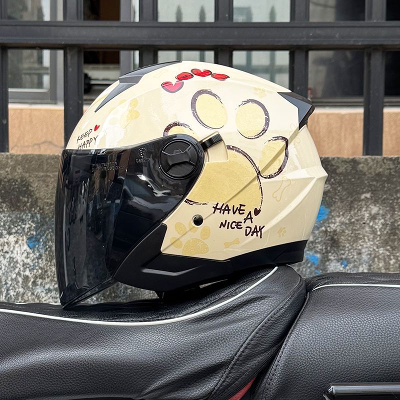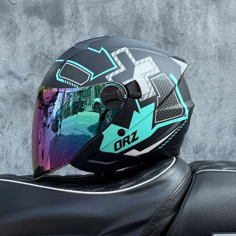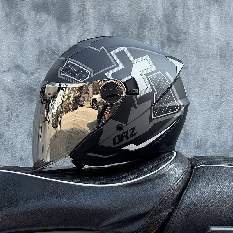 ORZ新款电动自行车头盔男女双镜片冬季头盔复古半盔防晒可装蓝牙