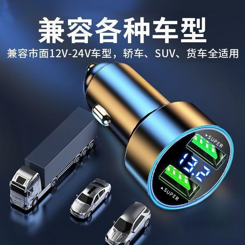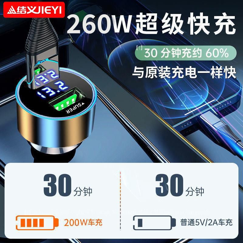 结义车载手机充电器超级快充一拖二USB车载快充头点烟器闪充头