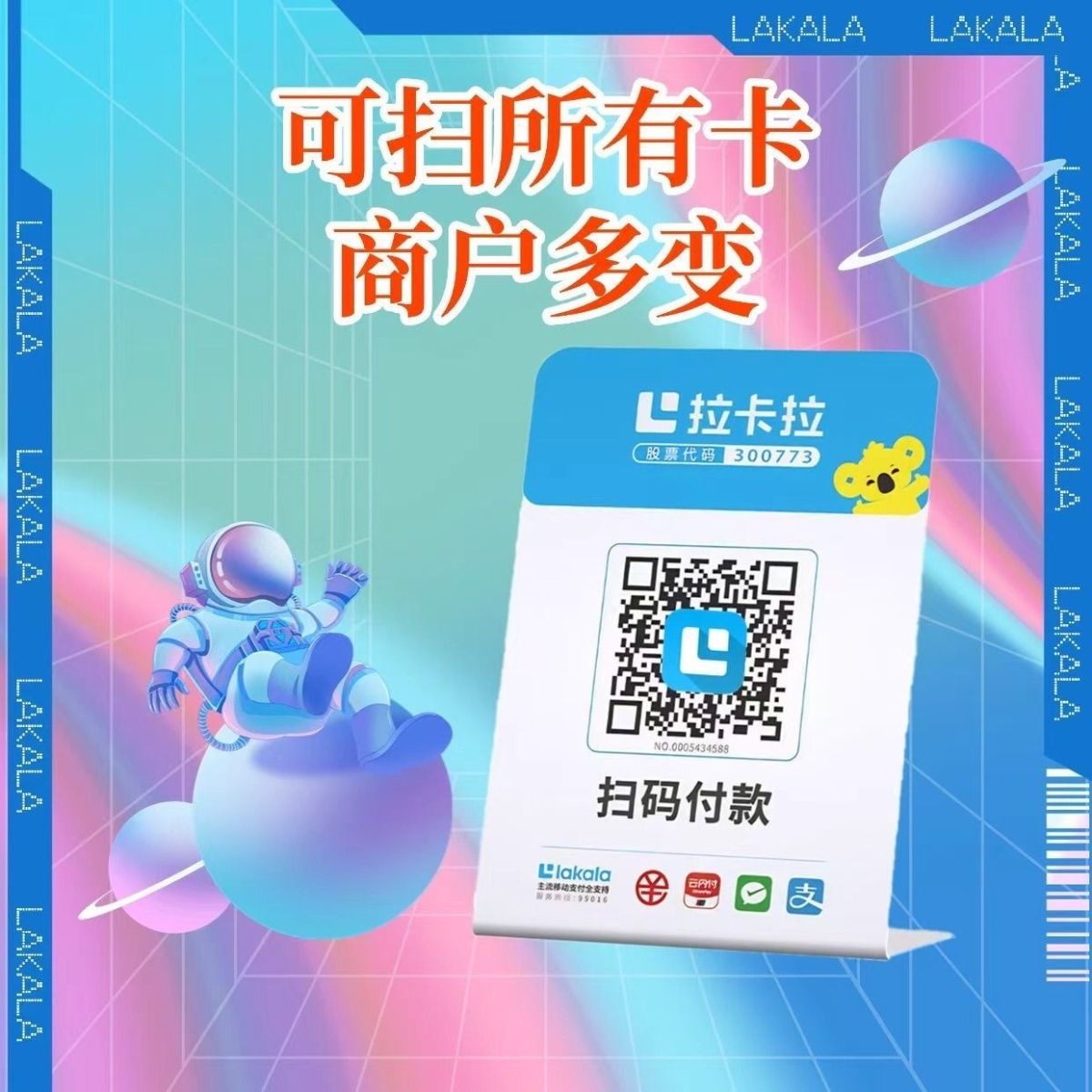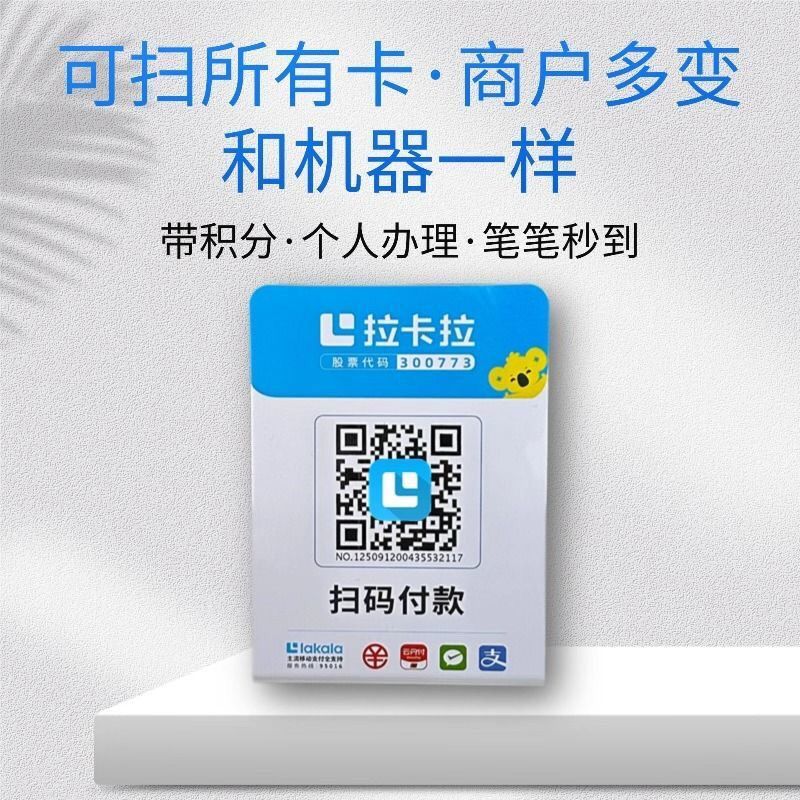 拉卡拉扫码支付移动聚合大额手收银付款商户三合一二维码