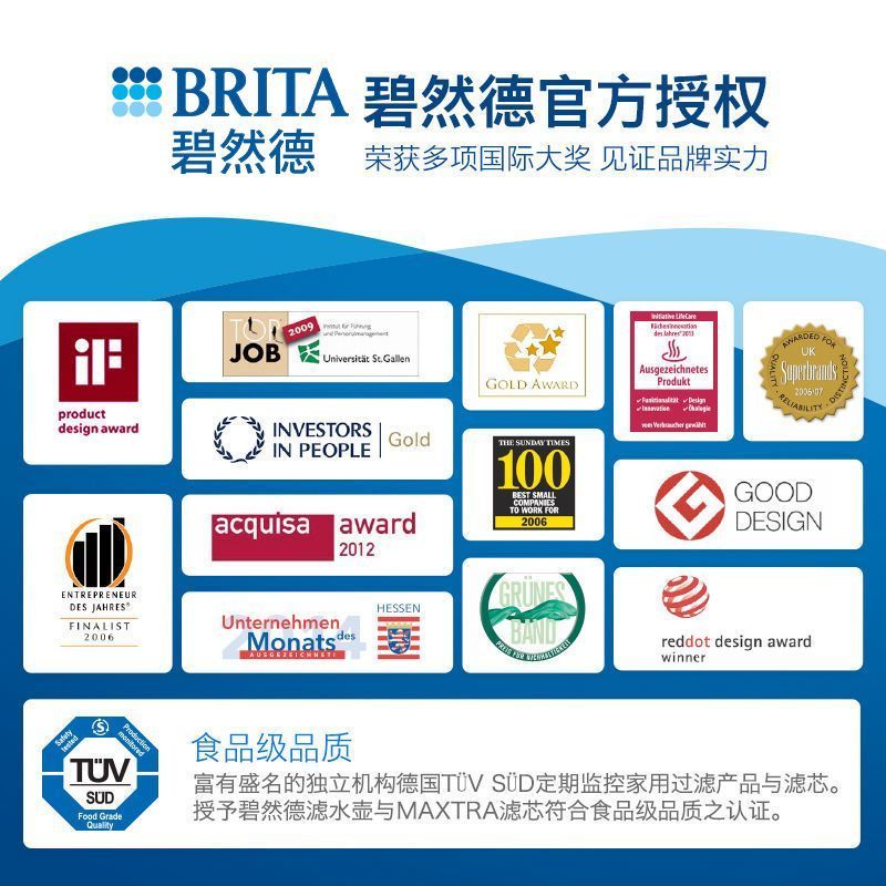【含周边赠品】BRITA碧然德滤水壶净水壶厨房用具Aluna光汐1壶2芯