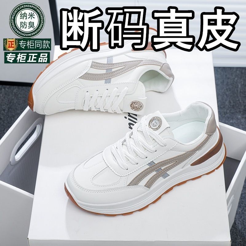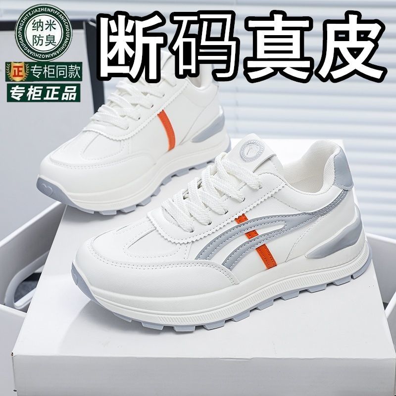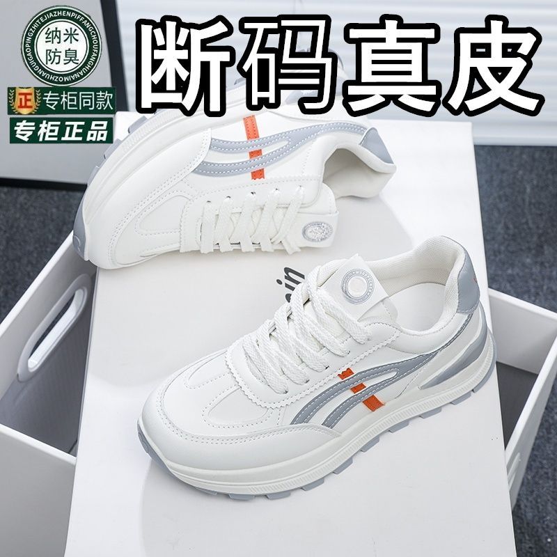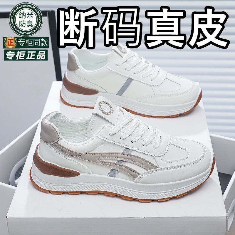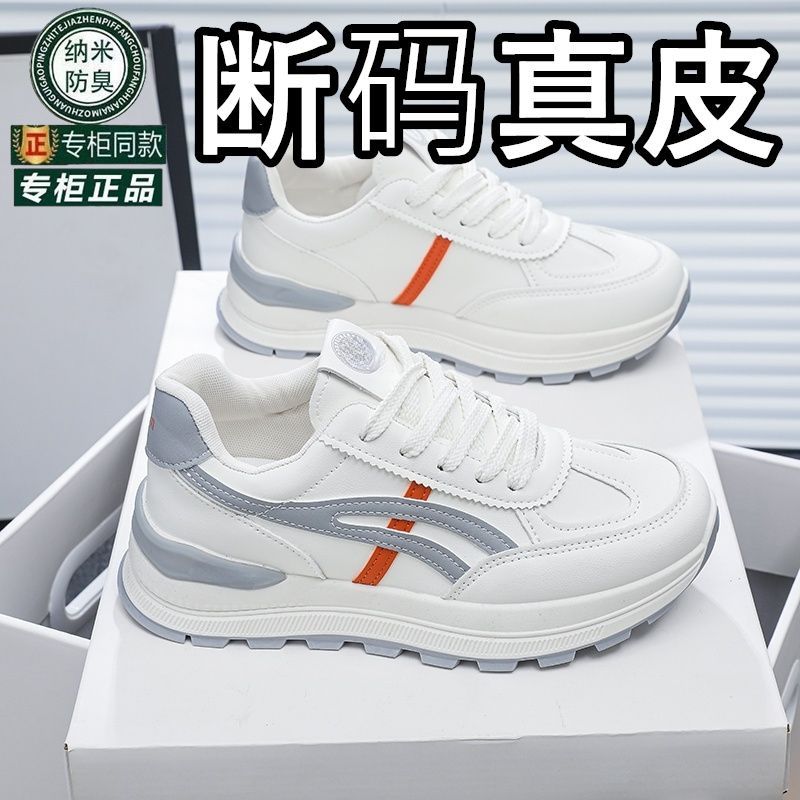 品牌断码真皮小白鞋女2025春季新款舒适百搭软底轻便防滑运动鞋