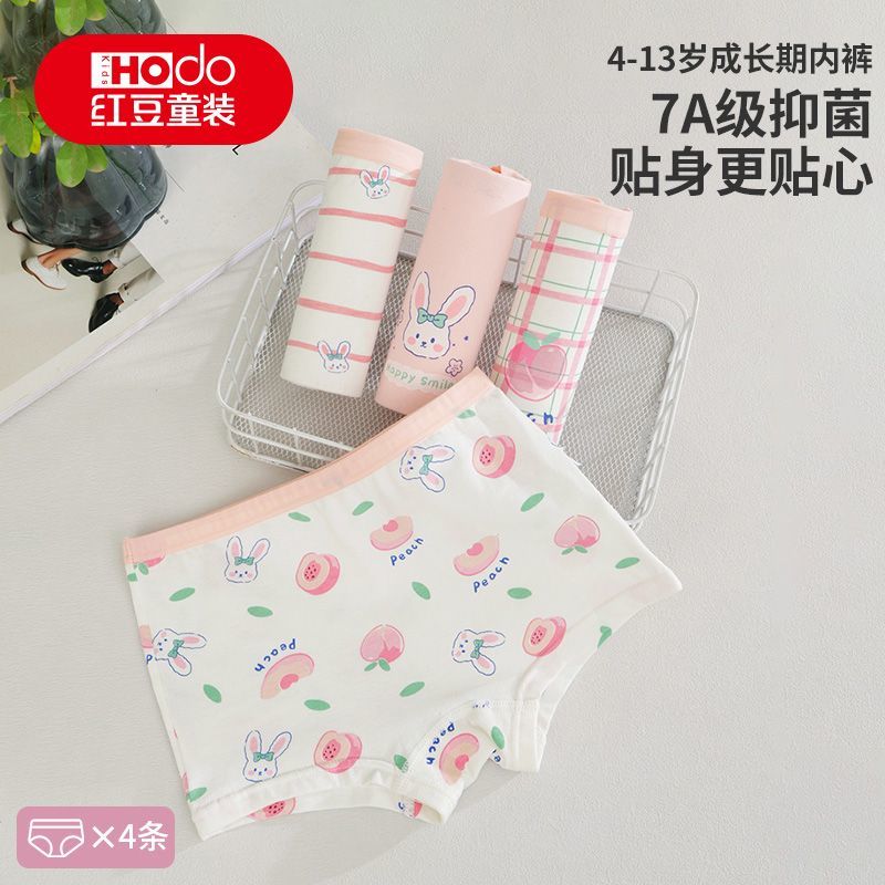 红豆儿童内裤女童内裤宝宝A类棉质平角短裤婴幼儿小童内裤混色4条