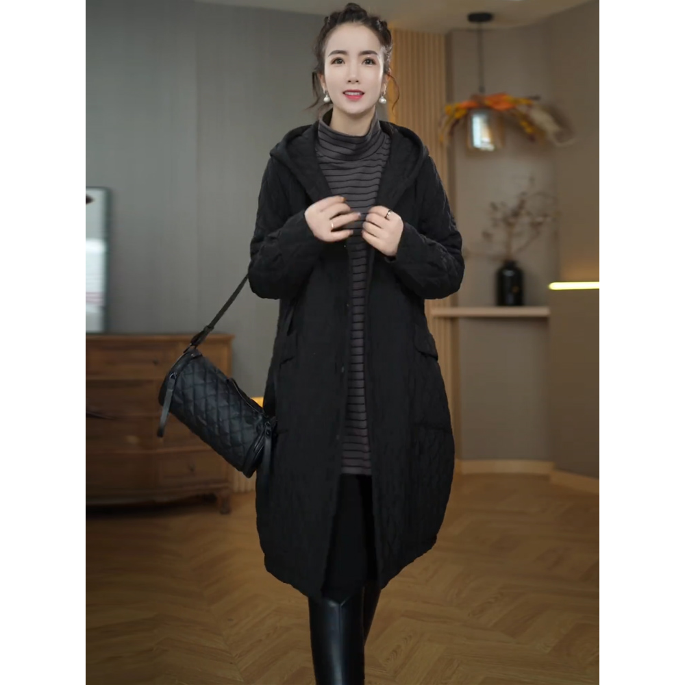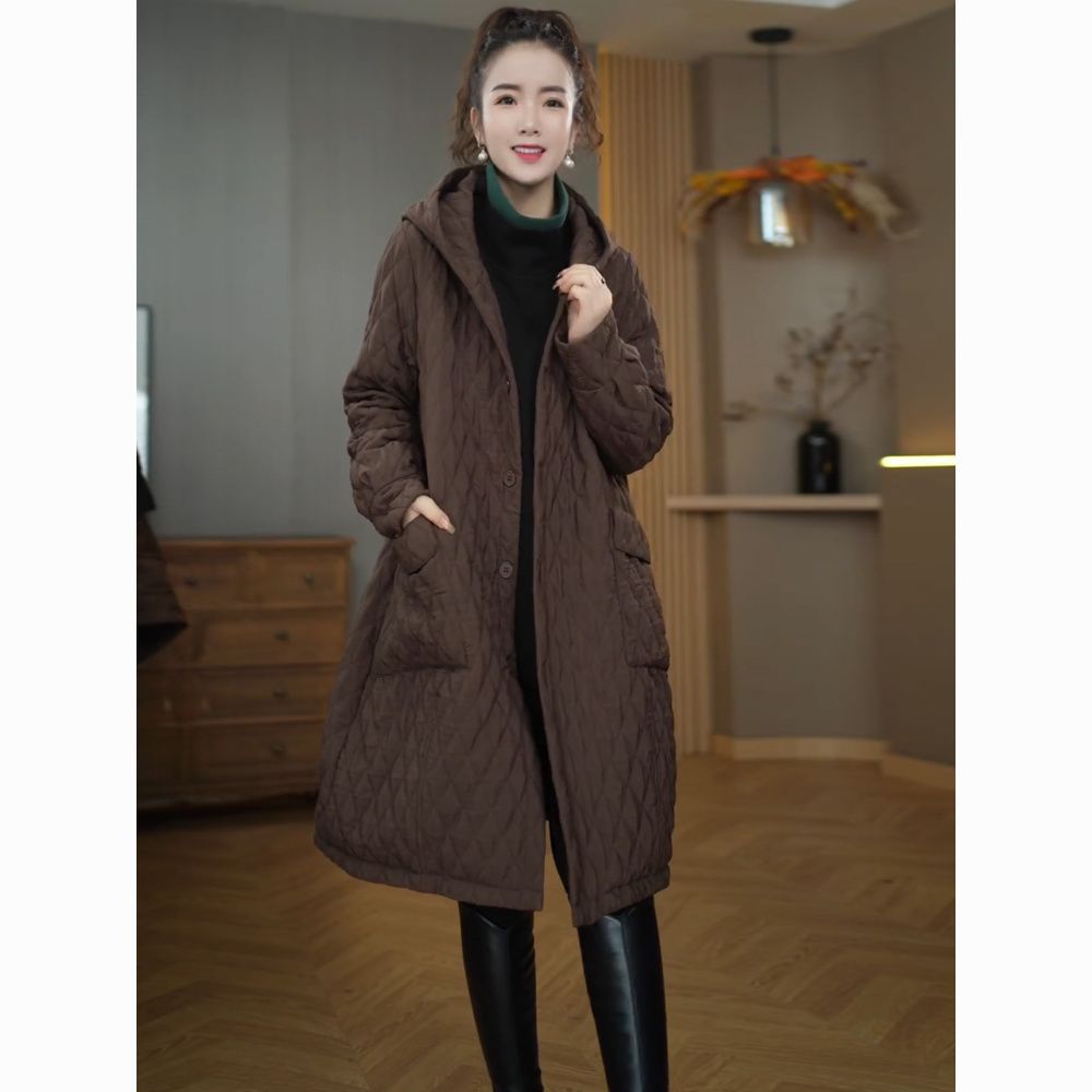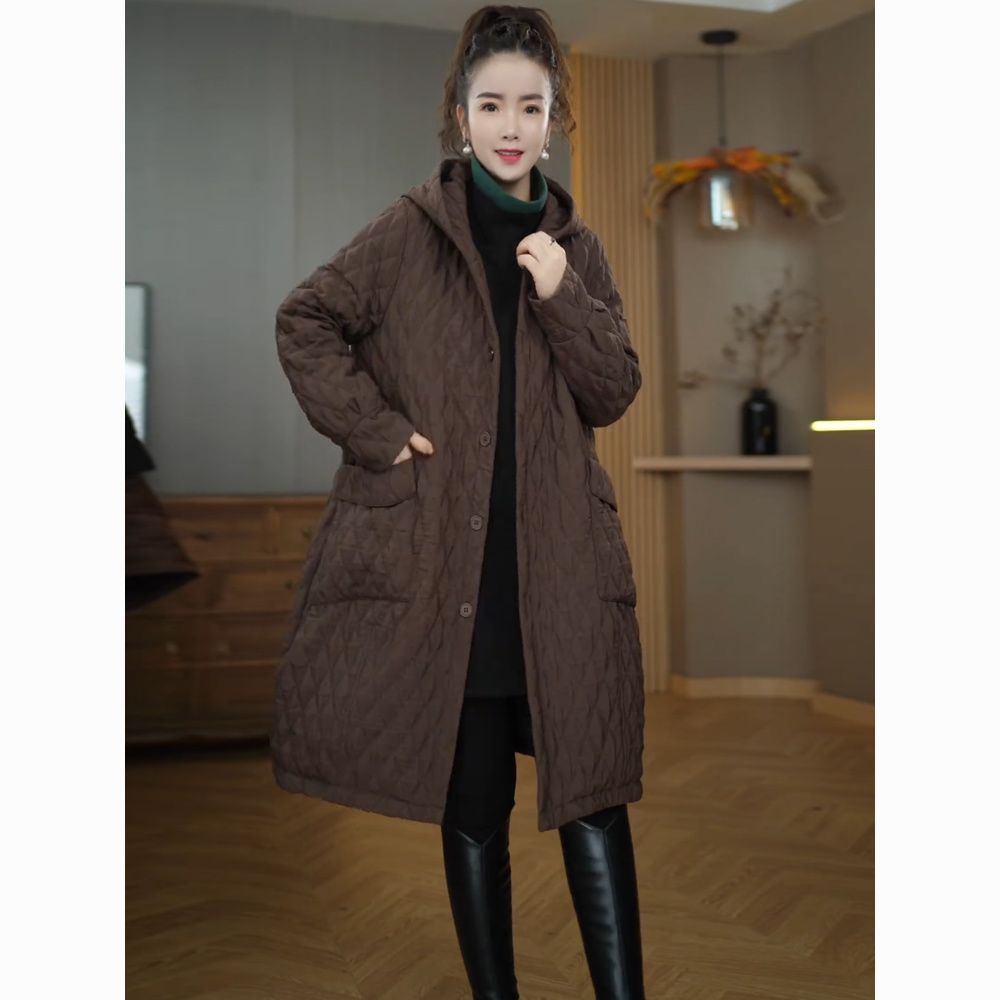 时尚大码妈妈外套冬季加厚中长款新款连帽显瘦棉衣休闲宽松棉服