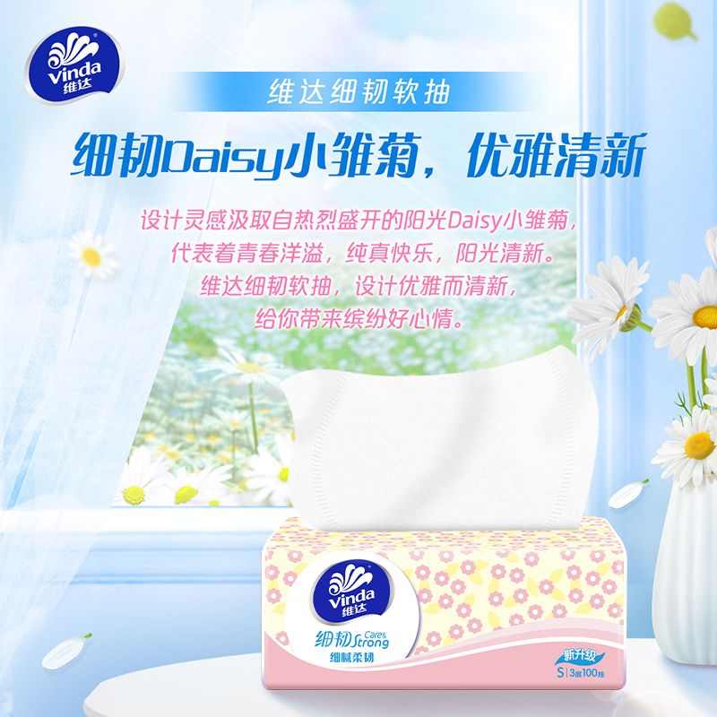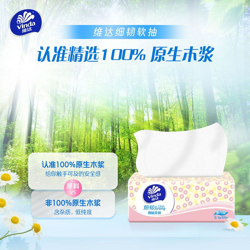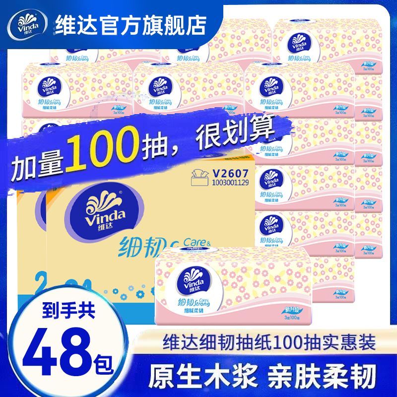 维达抽纸细韧XS码100抽面巾纸纸巾可擦手家用整箱餐巾卫生纸宿舍