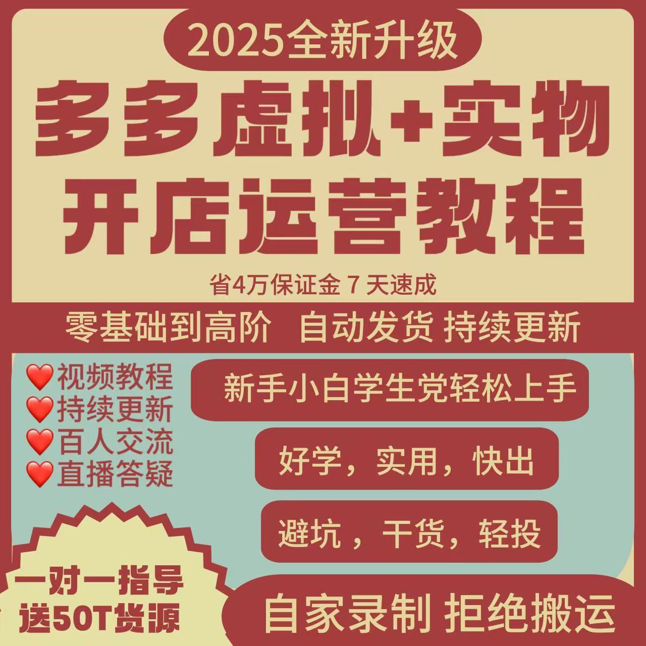 2025多多虚拟产品加实物升级教程开店运营新手到高阶1v1全程指导