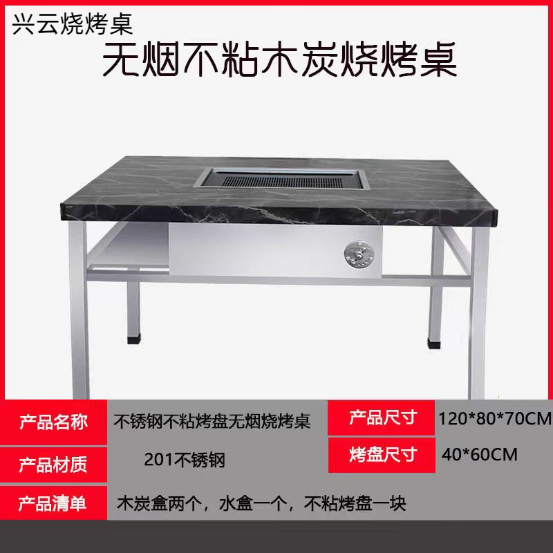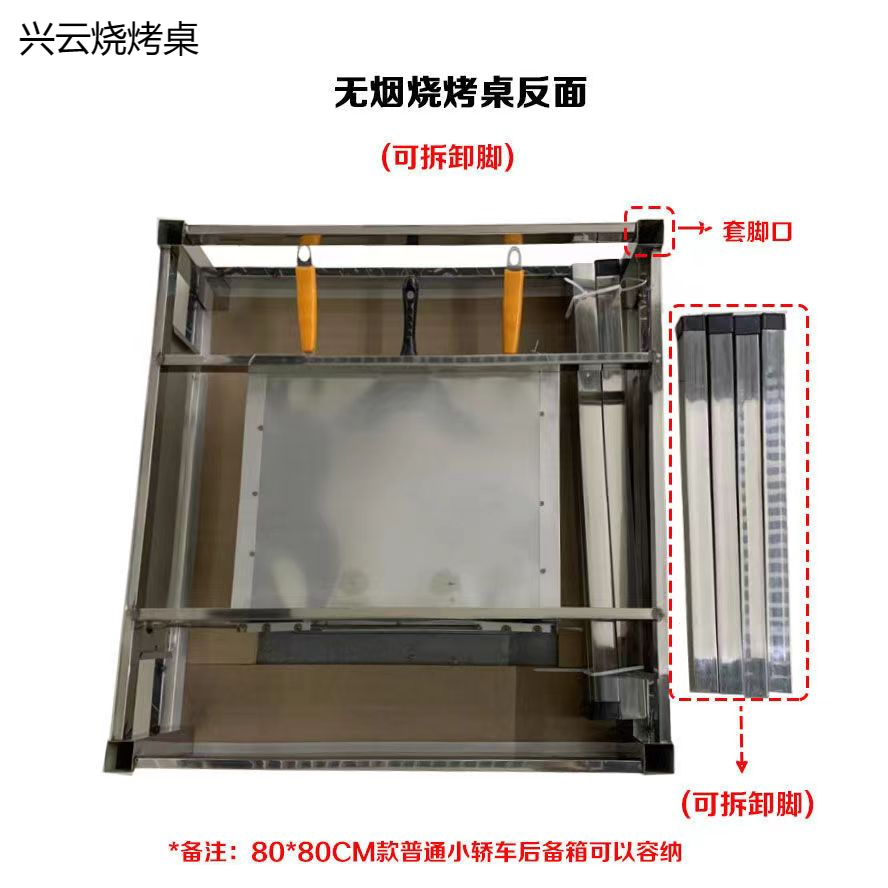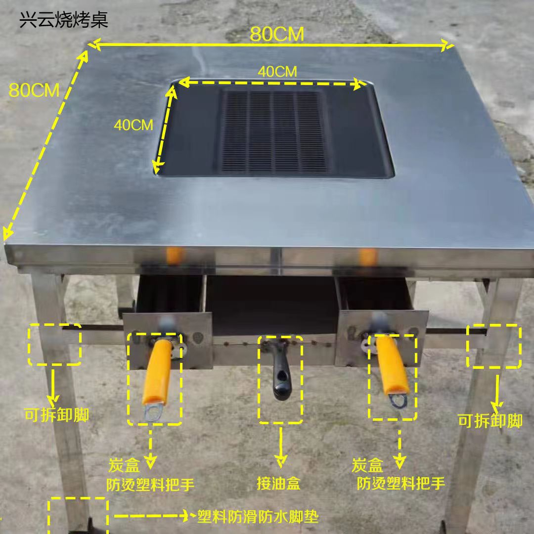 自助无烟烧烤桌子木炭商用不锈钢烧烤架家用户外烤肉摆摊烤羊腿桌