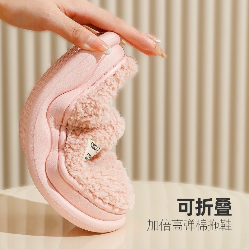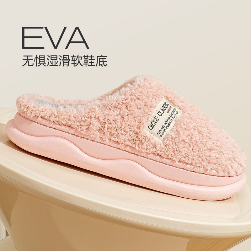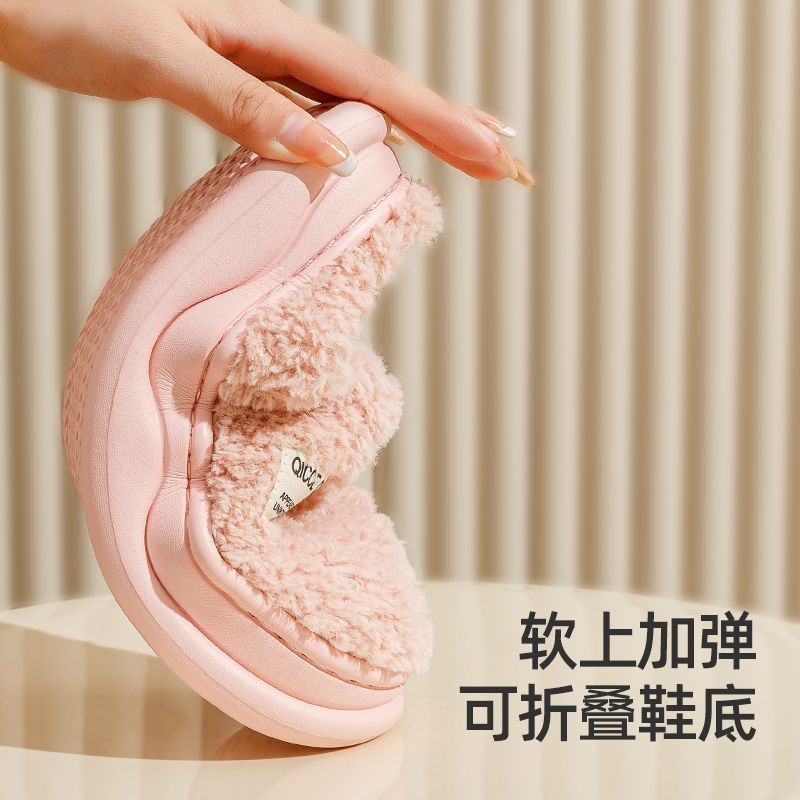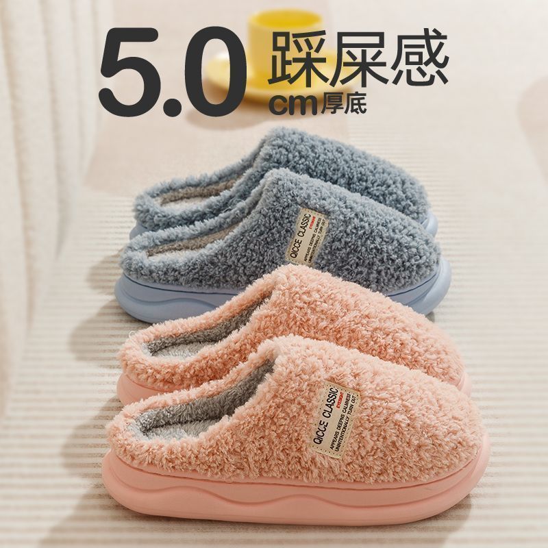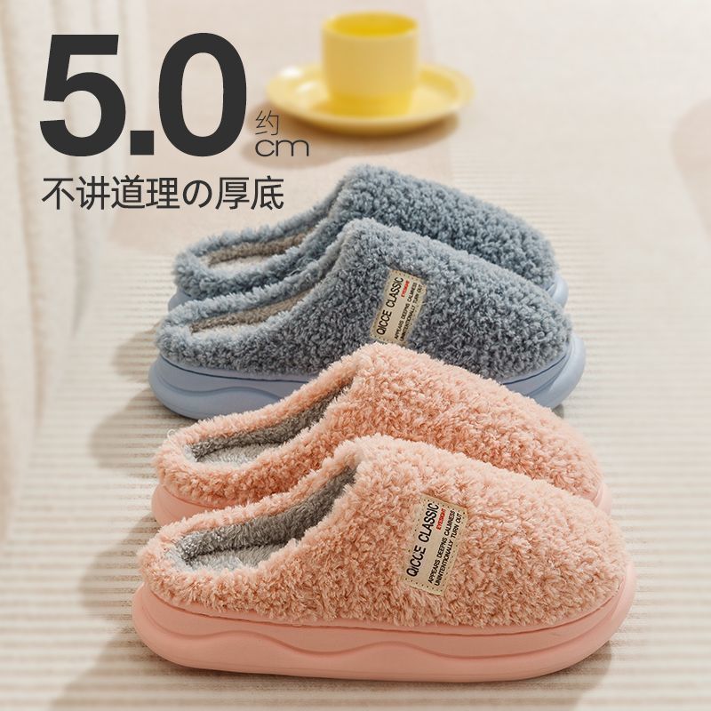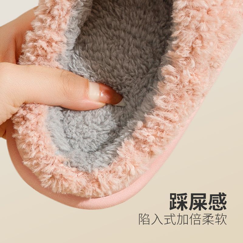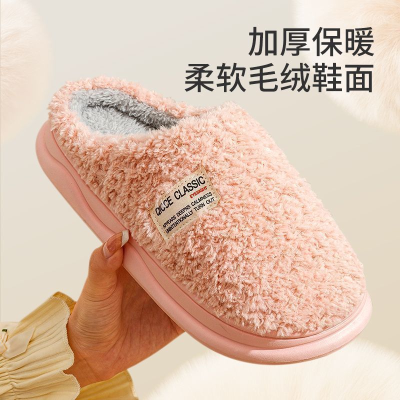 新款加绒家居家室内加厚保暖防滑情侣毛毛棉拖鞋月子鞋女
