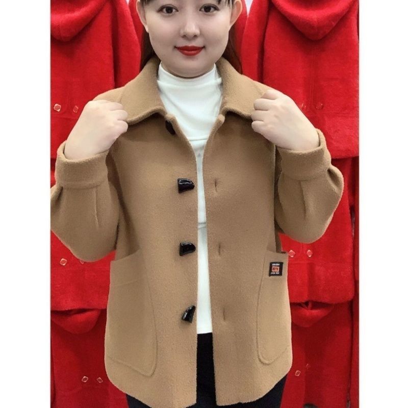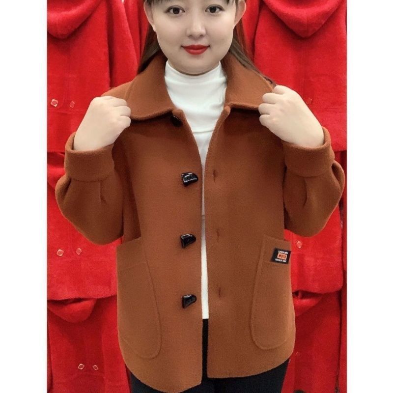洋气时尚妈妈装双面呢外套女秋冬宽松短款纯色中老年女装上衣开衫【11月24日发完】