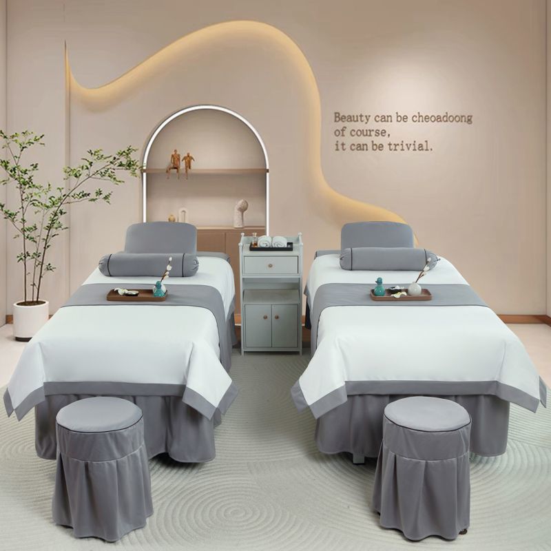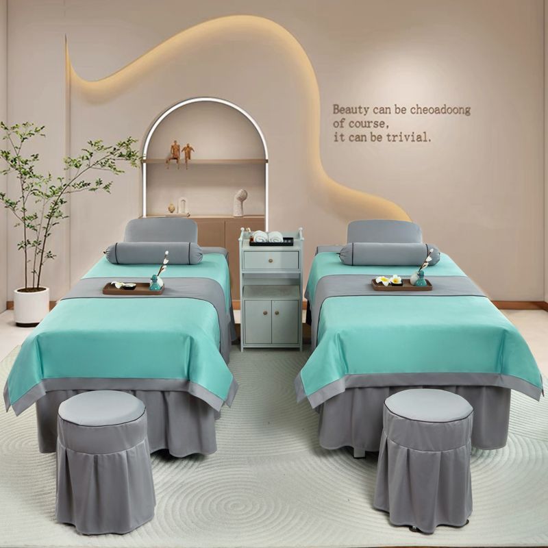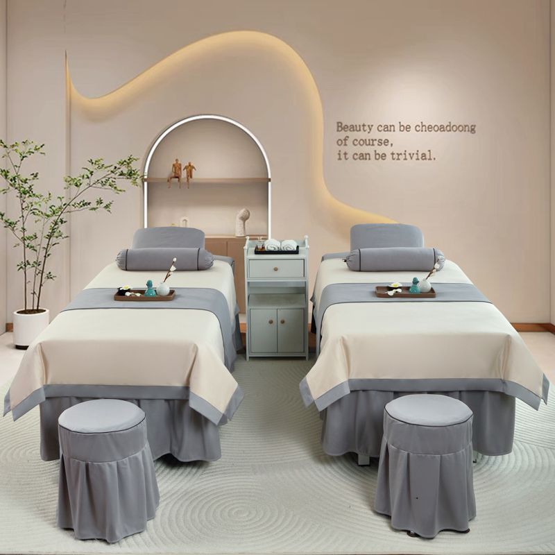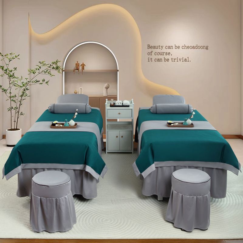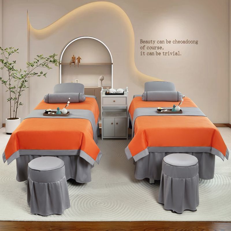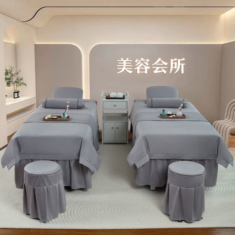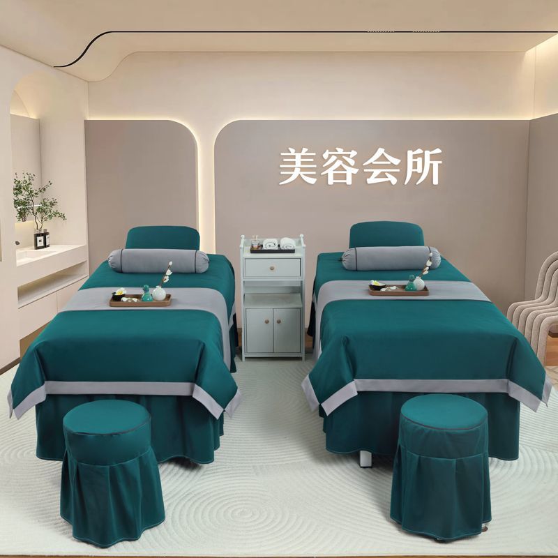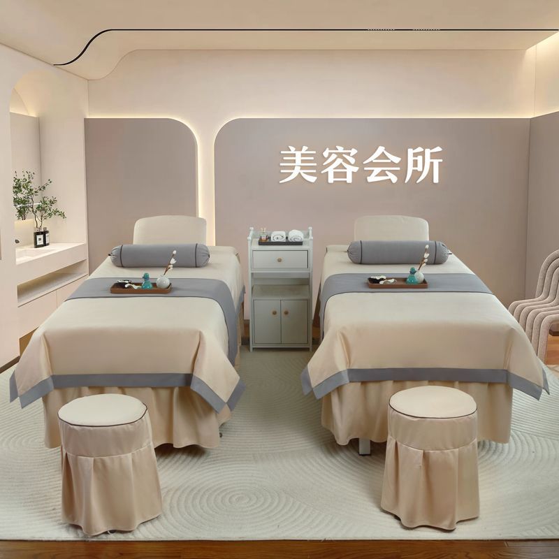 高档美容床罩四件套美容院荷兰尼简约轻奢按摩韩式理疗全纯棉麻套