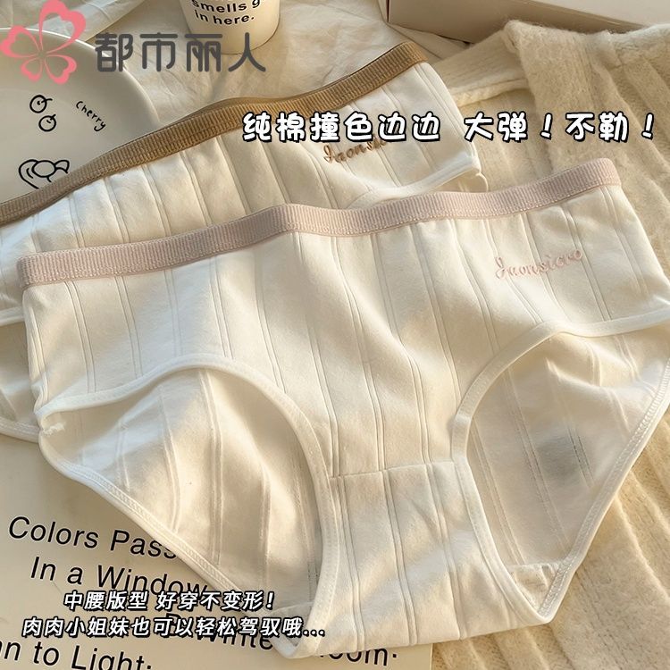 都市丽人内裤女纯棉抑菌a类全棉裆中低腰时尚简约薄款透气三角裤