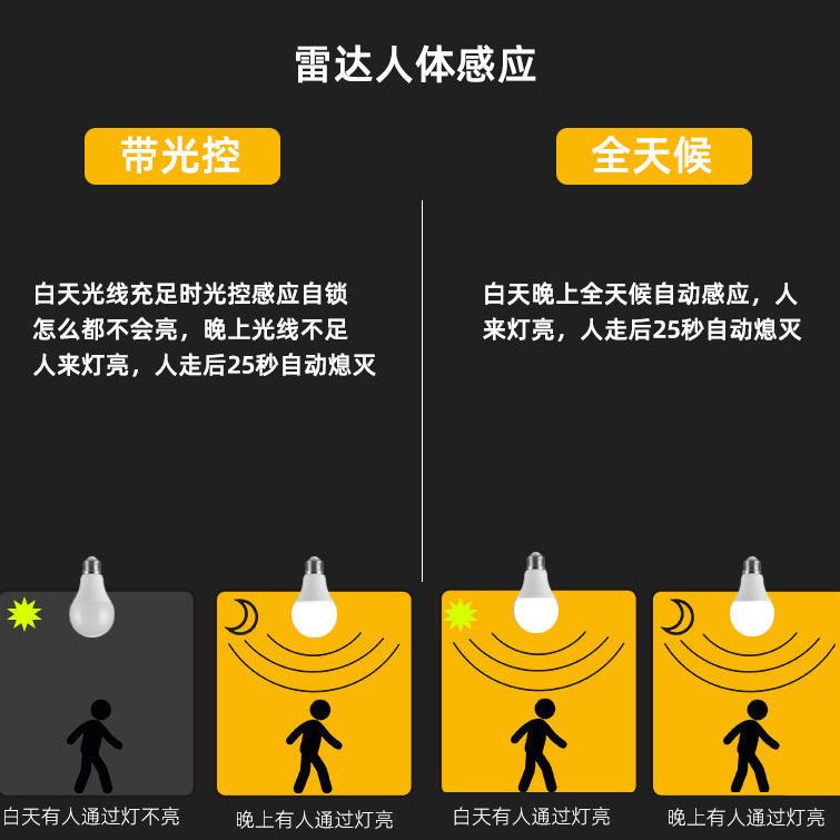 雷达感应灯声光控灯红外人体感应灯泡小区家用楼道走廊车库LED灯