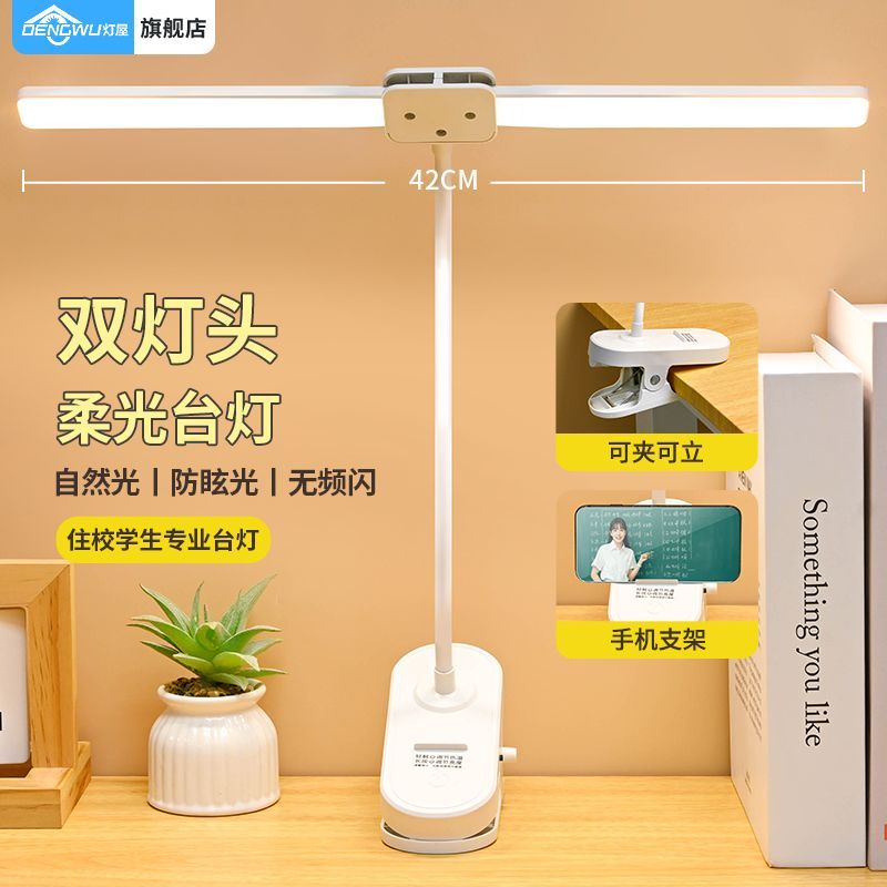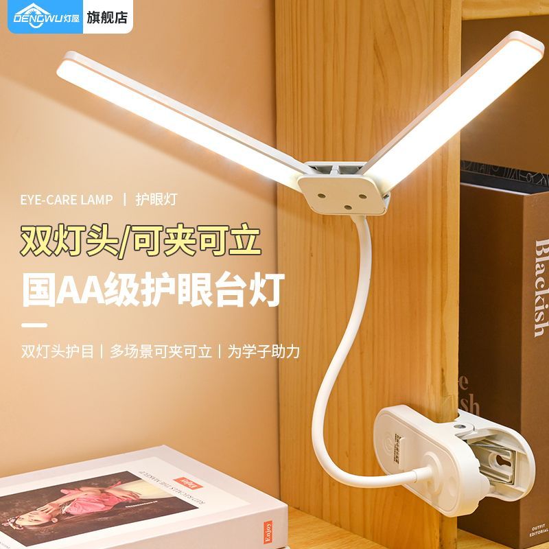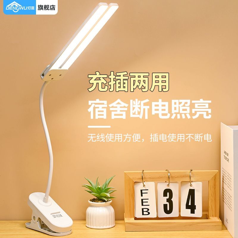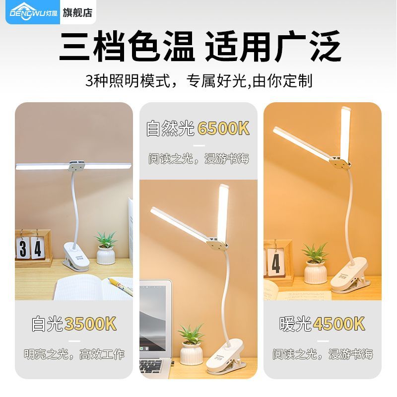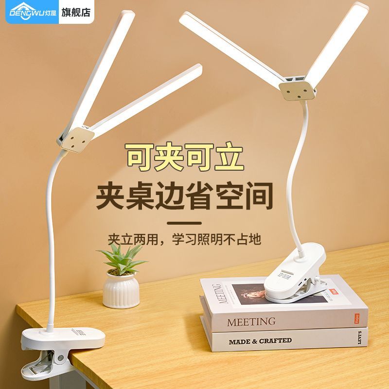 灯屋夹式LED台灯护眼学习儿童保护视力可充电插电学生宿舍阅读灯
