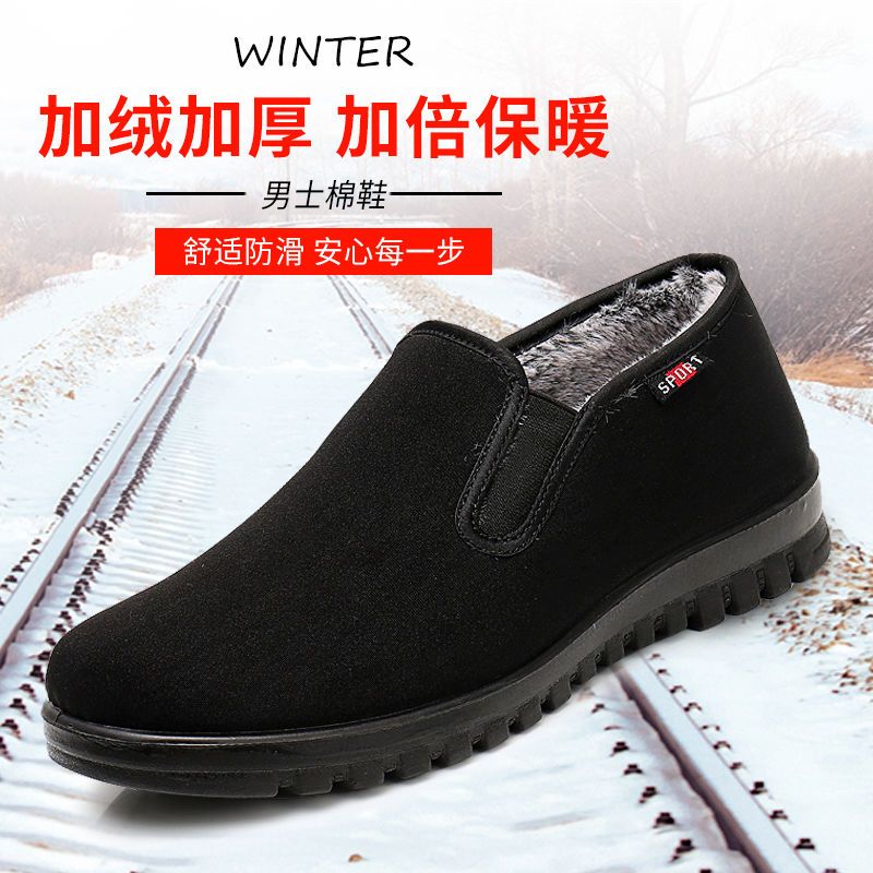 冬季棉鞋男老北京布鞋加绒保暖软底防滑中老年人爸爸鞋休闲工作鞋