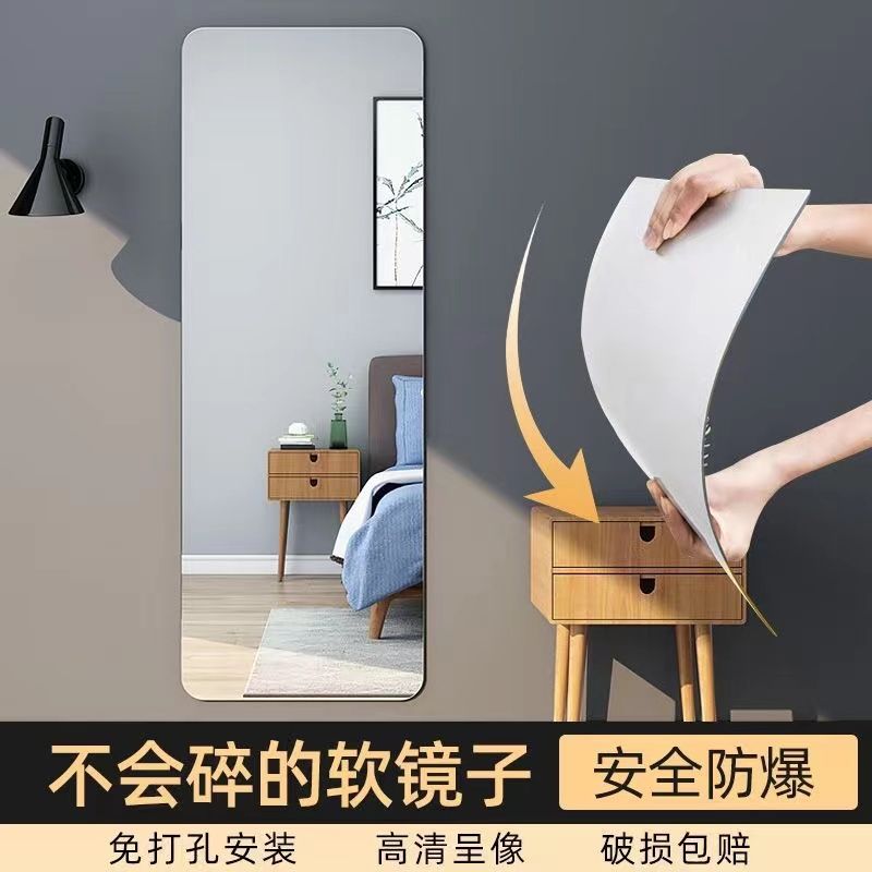 亚克力软镜子贴墙自粘家用可定做裁剪穿衣镜高清壁挂全身镜不会碎