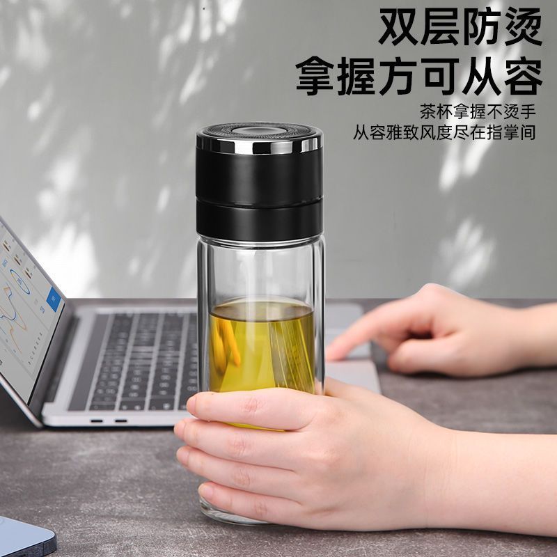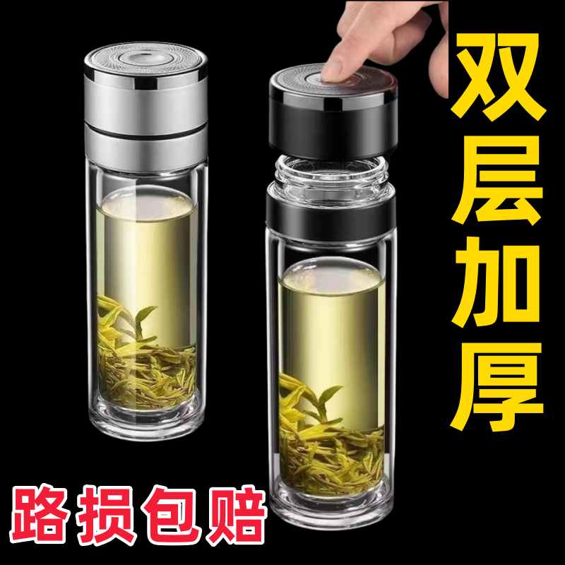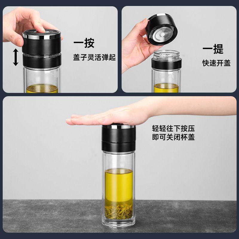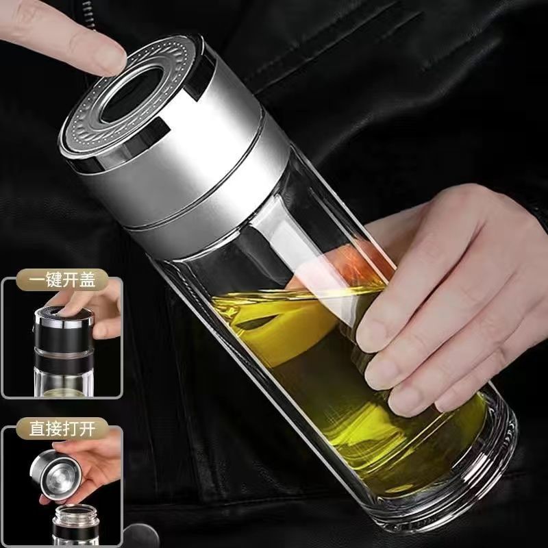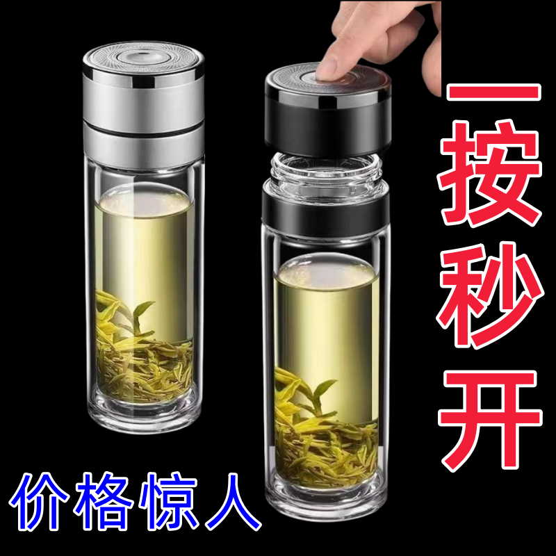 【耐高温】一键快速开盖双层玻璃杯大容量茶水分离泡茶杯男女水杯