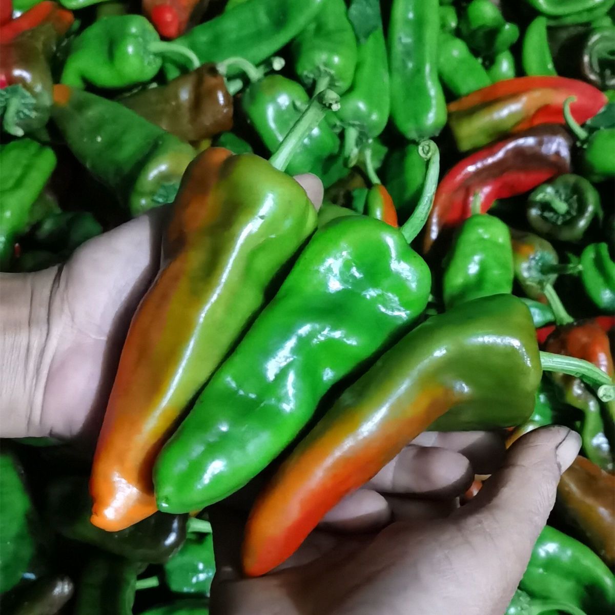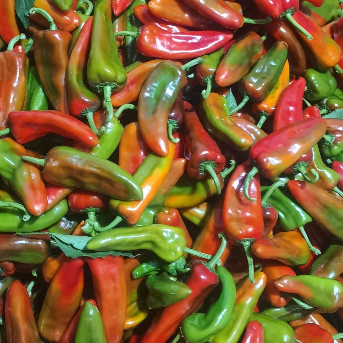 新鲜花辣椒微辣红辣椒虎皮椒牛角椒青红绿紫辣椒混装皮薄肉厚大椒