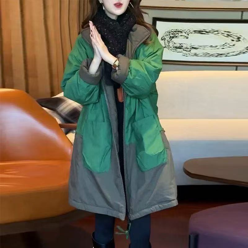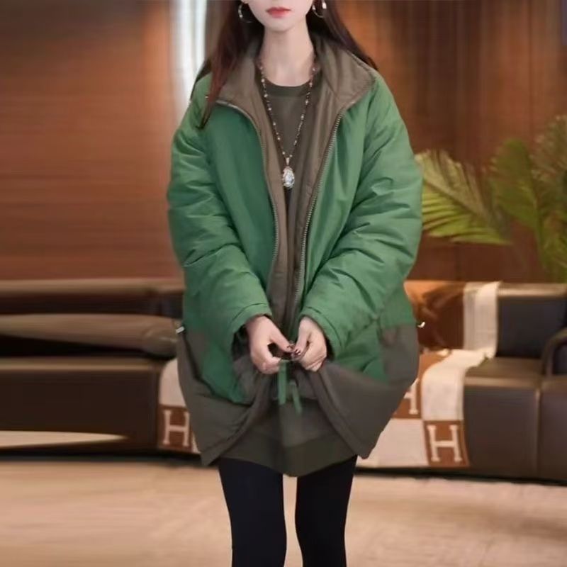 2025韩版气质百搭立领双面穿棉衣秋冬新款休闲显瘦中长款加厚保暖【15天内发货】