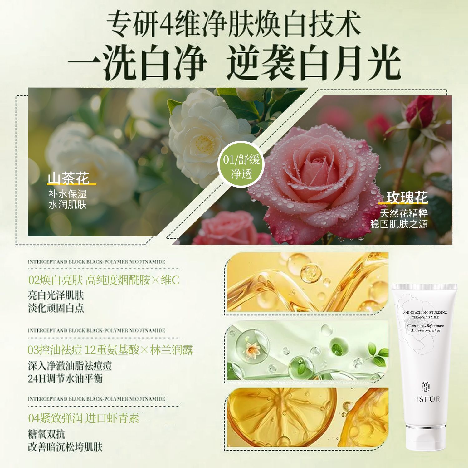 氨基酸洗面奶洁面乳深层清洁温和控油祛痘去黑头补水保湿提亮熬夜